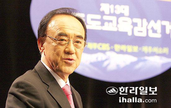 ▶제주영어교육도시 추진과정에 제주도교육청이 배제된 듯한 느낌을 준다. 교육감이 되면 어떻게 하겠는가. (보충질의 홍창의)재원확보 방안은?=도교육청이 배제됐다는 느낌을 지울 수 없다. 여론형성 없이 어쩔 수 없이 추진되고 있다는 인상이다. 도교육청의 의견이 반영되고 제주도의 이익과 교육수요자인 도민들의 공감 있어야 한다. 도민공감 없는 영어교육도시는 사상누각에 불과하다. 영어교육도시는 재원이 문제다. 정부에서 주는 예산만 믿지 말고 대기업 등을 방문해 현실을 알리는 등 발로 뛰어야 한다. 영어교육도시가 되면 외국으로 유학을 가는 다른 지역의 학생들을 제주로 유인해야 한다. 교육감이 되면 이에 따른 전담부서를 설치하겠다.
