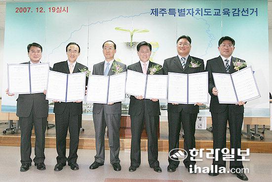 제주특별자치도선관위는 후보자 등록마감일인 26일 오후 5시 도선관위에서 제주특별자치도교육감선거 후보자인 신영근·양성언 후보와 제주경실련 김현철 대표, 제주특별자치도학교운영위원장협의회 장대일 회장, 제주도기자협회 고대용 회장, 도선관위 정갑주 위원장 등이 참석한 가운데 매니페스토 정책선거 실천의지를 다짐하고 정책선거실천 협약에 서명했다.