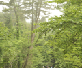 굽이 굽이 이어진 길을 걷는 이들의 모습이 울창한 숲과 하나가 된다.
