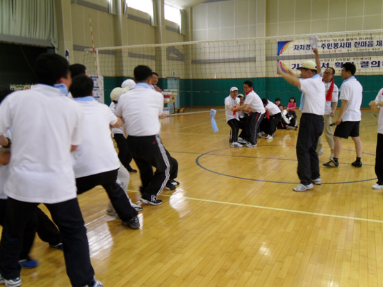 체육대회을 마무리 하면서 자치경찰대와 주민봉사대와 기념촬영..
