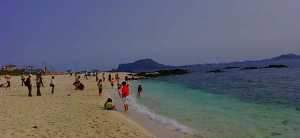 세계자연유산인 일출봉을 문지기로 세우고 우도를 찾는 수 많은 관광객을 안아주는 어머니 같은 산호사 모래사장인 서빈백사./사진=박우철 시민기자.