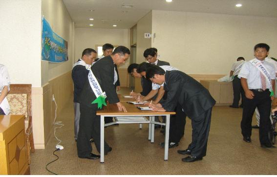 | 부산광역시연합청년회 창립 기념일에 부산해군회관에서 서명을 받고 있는 모습.. |