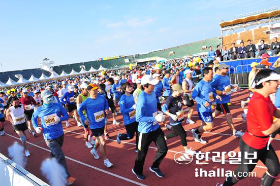 대회는 제주종합경기장 주경기장을 출발해 제주시 용담해안도로와 애월해안도로 등을 왕복하는 코스에서 진행된다. 출발은 오전 9시 30분부터 45분까지 풀코스와 하프코스, 10㎞, 5㎞ 순으로 이뤄진다. 대회 참가비는 풀·하프코스인 경우 3만원이며, 10㎞는 2만원, 5㎞는 1만5000원이다.