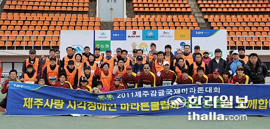제주감귤산업 육성을 위해 시작해 올해 9회째를 맞은 2011 제주감귤국제마라톤에는 대회 위상에 걸맞게 지역산업 발전과 사회봉사 활동을 모토로 내걸고 활동하는 단체들의 참가가 이어졌다. 지난 6월 발대식을 통해 본격적인 활동을 시작한 제주희망포럼(이사장 김용하)도 지역현안 해결에 동참하는 의미에서 회원들이 대거 참여해 희망의 레이스를 펼쳤다.