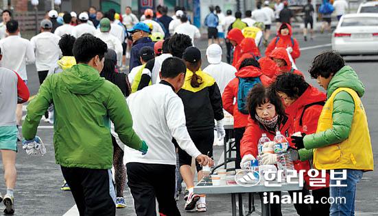 성공적으로 대회가 개최될 수 있는 것은 주최측의 치밀한 준비가 있었겠지만 무엇보다 교통통제와 급수봉사 등에 도움을 주는 자원봉사자들의 역할이 절대적으로 필요하다.그동안 제주시지역에서 개최될때에도 많은 자원봉사자들의 도움이 컸다.