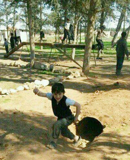 | IS의 어린이 락까 군사훈련 캠프 수니파 원리주의 무장단체 이슬람국가(IS)가 수도로 선포한 시리아 락까의 군사훈련 캠프. 이곳 저곳에 어린이들의 모습이 보인다. 이 사진은 '락까는 조용히 학살되고 있다'는 이름의 반(反)IS 단체가 20일(현지시간) 온라인으로 공개한 영상에서 캡처한 것이다. IS도 카자흐스탄 어린이들이 군사훈련을 받는 동영상을 최근 인터넷으로 공개했다. 연합뉴스 |