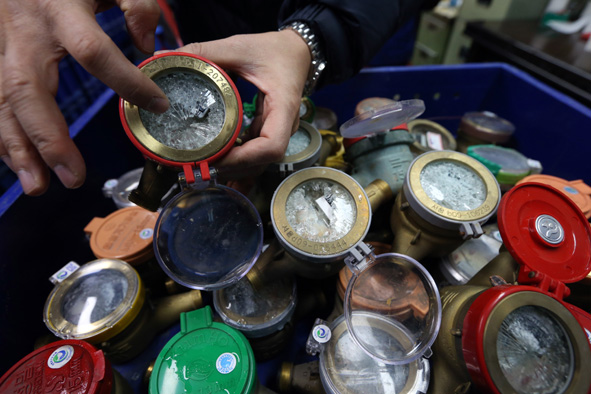 지난 2일부터 계속된 한파로 서울시내 계량기 동파 피해가 487건 발생한 것으로 집계됐다. 6일 서울시에 따르면 한파가 처음 시작된 2일 1건, 3일 302건, 4일 106건, 5일 50건, 6일 28건의 동파 신고가 접수됐다. 7일 오후 서울 북부수도사업소 관계자가 수거한 동파 계량기를 정리하고 있다. 연합뉴스