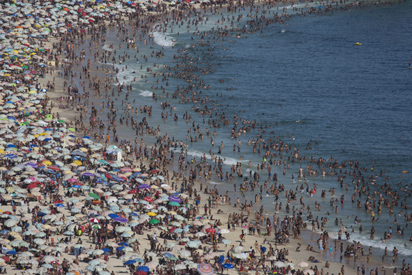 한여름을 맞은 남반구 브라질의 리우데자네이루 이파네마 해변에 28일(현지시간) 수천명의 피서객들이 몰려와 무더위를 식히고 있다. 이날 리우데자네이루의 기온은 섭씨 40도까지 올랐다. 연합뉴스