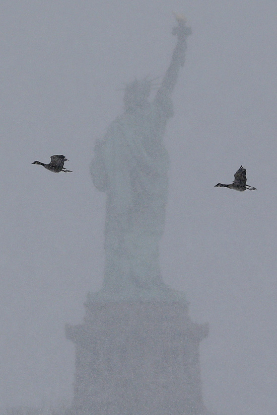 눈폭풍에 휩싸인 ‘자유의 여신상’