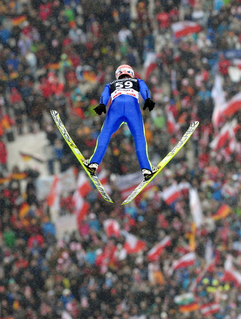 지난 2일 독일의 하이델베르크에 열린 FIS 스키 점프 월드컵에서 세브린 프로 인트(독일) 선수가 완벽에 가까운 점프연기를 보여주고 있다. 연합뉴스