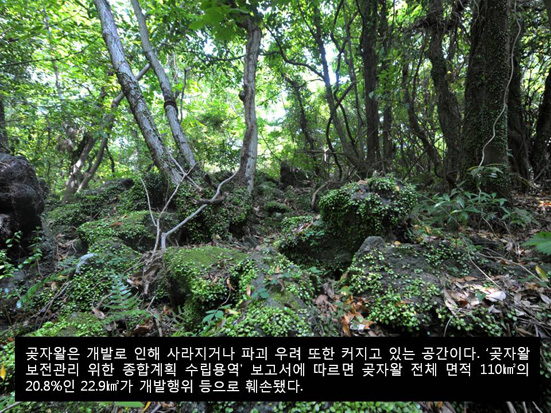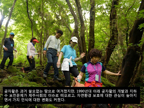 제주 곶자왈이 세계인의 주목을 받은 것은 2012년 제주WCC(세계자연보전총회)에서다. 이 때 많은 내·외신과 환경전문가들은 곶자왈이 지닌 가치에 주목했다. 지질·생태학적 측면 뿐만 아니라 수자원 저장고로서의 역할과 곶자왈이 주민들의 삶에 깊숙한 영향을 끼쳤다는 점에 강한 인상을 받았다.