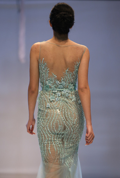지난 29일 레바논 베이루트에서 열린 2015봄-여름 패션쇼에서 Abed Mahfouz의 작품이 선보여 지고 있다.[연합뉴스]