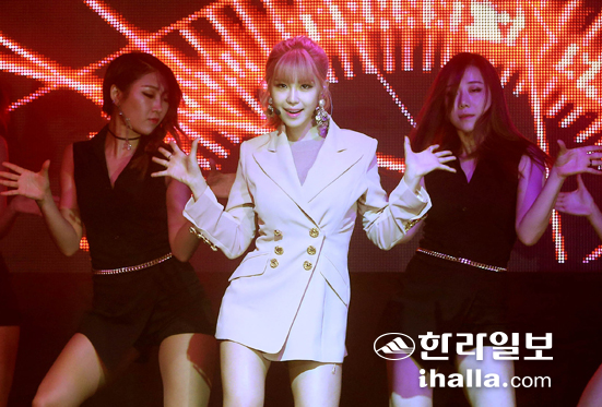 그룹 시크릿의 전효성이 7일 오전 서울 마포구 서교동 예스24무브홀에서 열린 미니앨범 '판타지아' 발매 기념 쇼케이스에서 공연을 선보이고 있다.[연합뉴스]