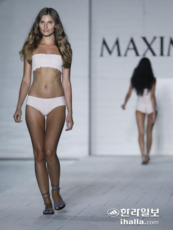 한 모델이 지난 18일(현지시간) 맥심수영복컬렉션에서 올 여름 유행할 비키니 수영복을 선보이고 있다.