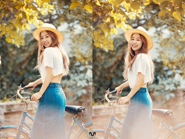 크롭 티셔츠와 롱스커트 패션으로 여성스러운 분위기와 함께 자연스럽고 편안한 포즈와 표정으로 밝고 청순한 유성은의 매력을 엿볼 수 있다.