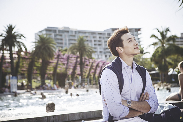 공개된 사진 속에서 '비'는 호주 퀸즈랜드주 브리즈번 내 위치한 아름다운 인공해변(Street Beach)과 완벽하게 어우러진 모습으로 비 특유의 자연스러운 매력을 보여주고 있다.