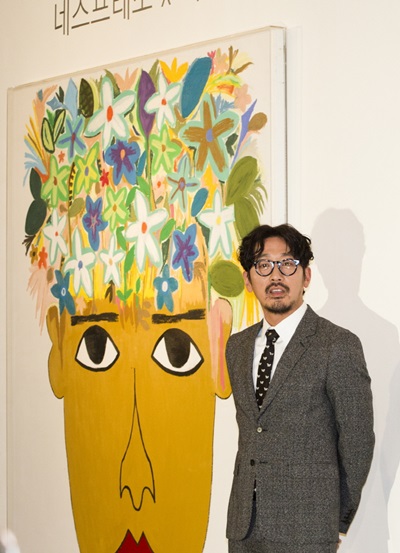 특히 이날 행사에서는 베일에 싸여있던 대표 작품을 공개하는 시간을 가졌다. 하정우 뒤로 드리워진 커튼을 거둬내자 꽃으로 사람의 머리를 형상화한 독특한 색감의 작품이 드러났다. 그는 직접 그린 작품 옆에 커다랗게 싸인을 남기며 네스프레소와 함께하는 #WhatElse 전시회의 시작을 알렸다.