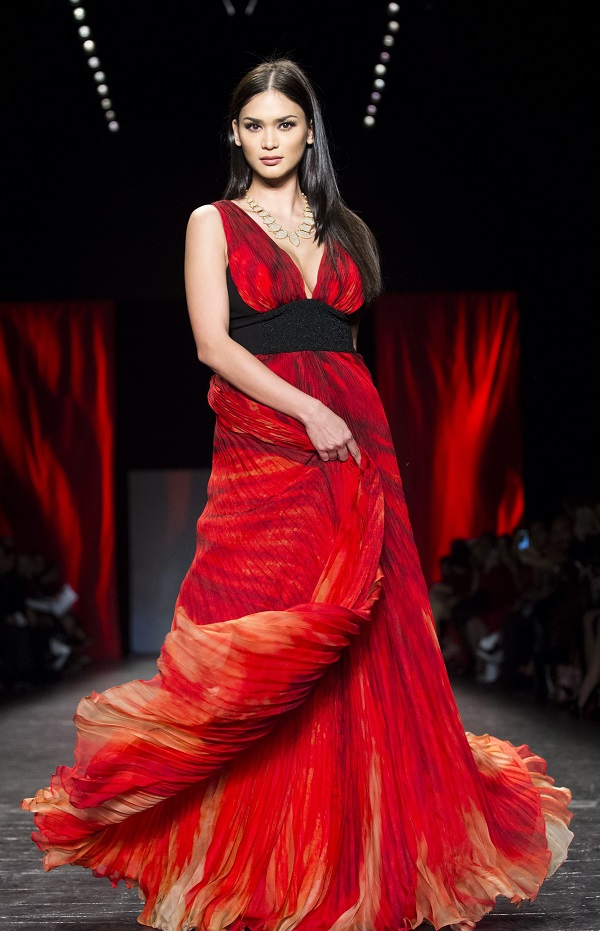 11일(현지시간) 미국 뉴욕의 '2016 뉴욕 패션위크' 행사 중 한 모델이 美심장협회의 여성 심장병 예방 캠페인 '고우 레드 포 우먼'(Go Red For Women) 홍보용 붉은색 드레스를 입고 런웨이에 서 있다. <저작권자(c) 연합뉴스, 무단 전재-재배포 금지>
