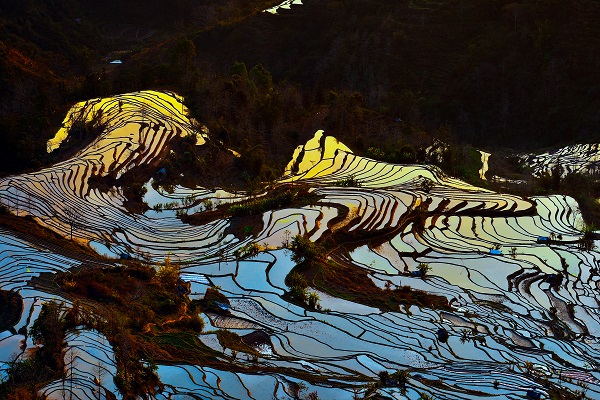 중국 윈난성 남서쪽의 훙허하니족·이족 자치주 위안양 현에서 볼 수 있는 계단식 논. 지난 20일(현지시각) 찍은 사진인데 마치 한 폭의 그림 같다.