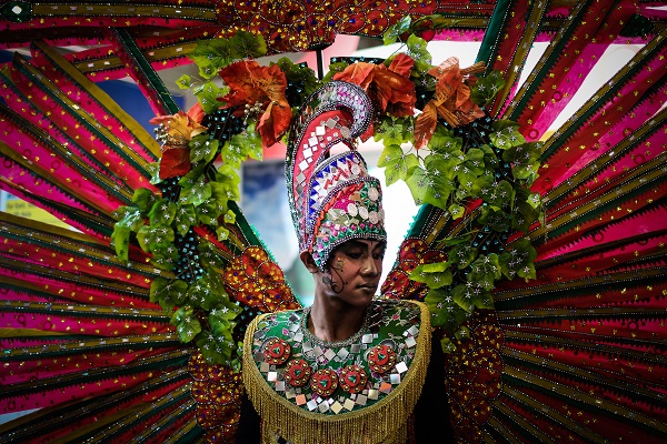 9일(현지시간) 독일 베를린에서 열린 제50회 베를린 국제관광박람회에서 인도네시아 전통의상과 메이크업을 한 직원이 화려한 인도네시아의 화려함을 선보이고 있다.