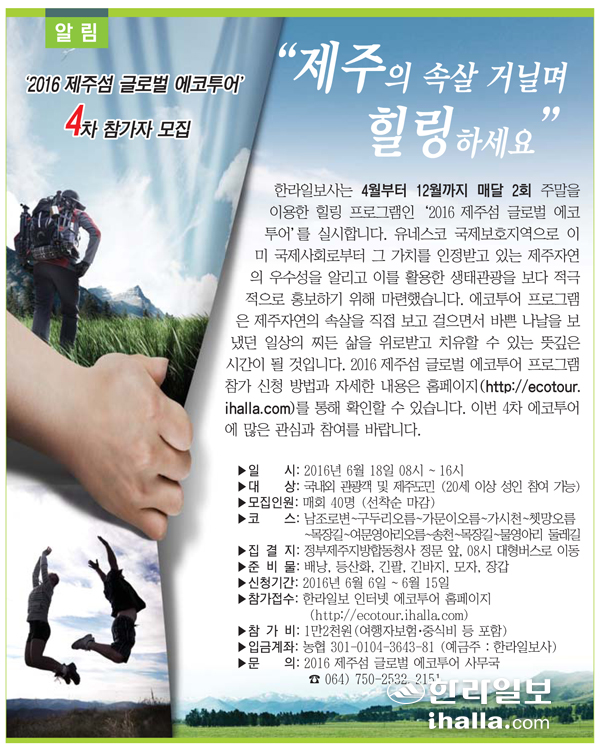 2016 제주섬 글로벌 에코투어 4차 참가자 모집