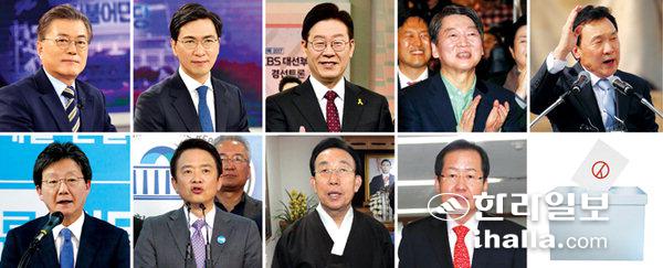 제19대 대통령선거를 앞두고 각 당 대선주자들이 지방을 겨냥한 '지방분권 강화' 공약을 잇따라 내놓고 있다. 왼쪽 위부터 시계방향으로 더불어민주당 문재인 전 대표, 안희정 충남도지사, 이재명 성남시장, 국민의당 안철수 전 대표, 손학규 전 의원, 자유한국당 홍준표 경남도지사, 김관용 경북도지사, 바른정당 남경필 경기도지사, 유승민 의원, 연합뉴스