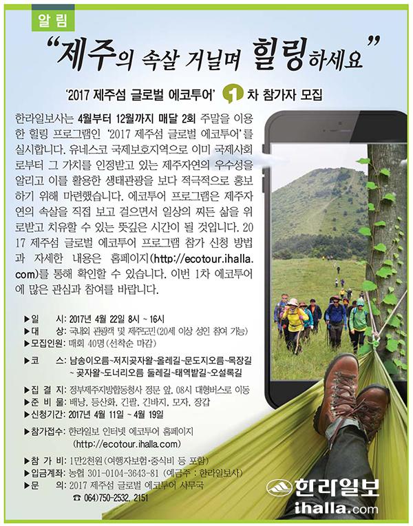 [알림]'2017 제주섬 글로벌 에코투어' 1차 참가자 모집