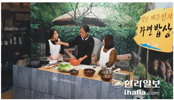 영상은 제주의 대표적 향토음식전문가 김지순 명인과 대를 이어 향토음식을 지켜오고 있는 양용진 제주향토음식보전연구원장이 함께 참여해 반향을 이끌었다. 특히 본보 기자가 함께 참여해 제주음식을 요리하면서 제주음식의 가치에 대해 이야기를 나누기도 했다.