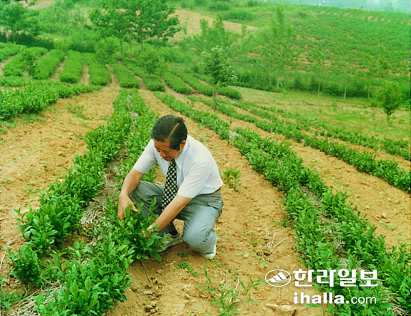 | 아모레퍼시픽 서성환 선대회장이 제주도에 녹차밭을 개간할 당시의 모습. |