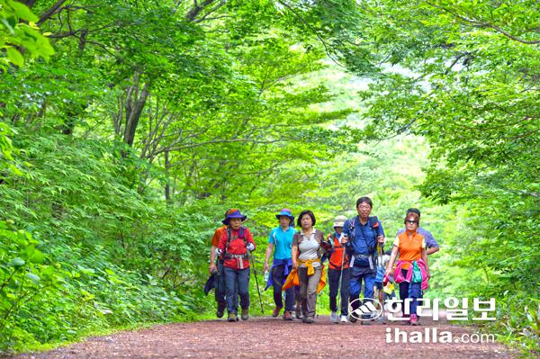 ▶비가 오면 더 걷기 좋은 길=제주의 걷기 여행지로 손꼽히는 곳으로 사려니숲이 있다.