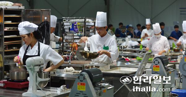 최근 제주관광대학교에서 열린 제52회 전국기능경기대회 제과 부문에 출전한 학생들이 경기에 집중하고 있다. 이번 대회에는 제주고 선수 10명이 제과·제빵 등 5개 분야에 참가해 그동안 갈고 닦은 기량을 펼쳤다. 강경민기자