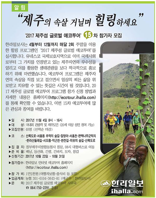 [알림]'2017 제주섬 글로벌 에코투어' 15차 참가자 모집