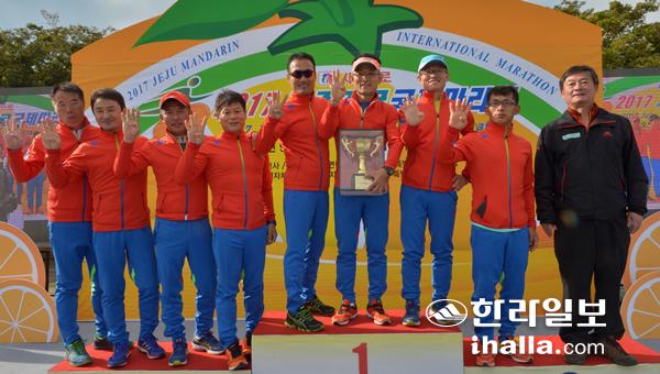제주감귤국제마라톤 클럽대항전 4연패 위업을 달성한 한라마라톤클럽. 강경민기자