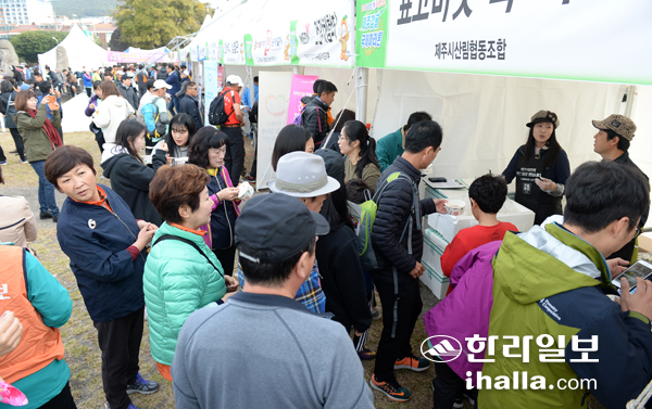 | 12일 열린 제주감귤국제마라톤대회에는 다양한 시식 코너가 마련됐다. 강희만기자 |