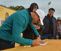 이날 서귀포시 위미중학교에서도 130명이 참가해 주목을 받았다. 지난해에 이어 두 번째로 참가한 위미중은 올해 초부터 대회를 준비했다. '누적 마라톤'이라는 이름의 학생활동을 도입해 운동장 한 바퀴당 도장 하나를 찍어주고, 졸업할 때까지 마라톤 풀 코스인 42.195㎞를 완주하면 인증서와 상품권 등을 주며 학생들의 참여를 유도한 것이다.