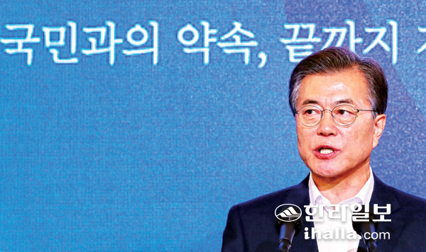 | 지난해 7월 청와대 영빈관에서 열린 국정과제 보고대회에서 인사말을 하는 문재인 대통령. |