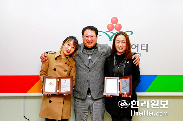 | 제주 1호 패밀리 아너 소사이어티인 김진욱·박희정 부부와 딸 김하나씨. 사진=제주사회복지공동모금회 |
