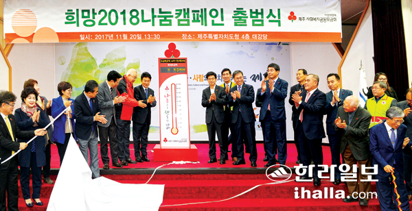 | 지난해 11월 20일 열린 제주특별자치도와 제주사회복지공동모금회의 '희망2018 나눔캠페인' 출범식. 사진=한라일보 DB |