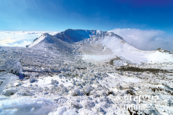 | 하늘에서 내려다 본 겨울 한라산. 사진=한라일보 DB |