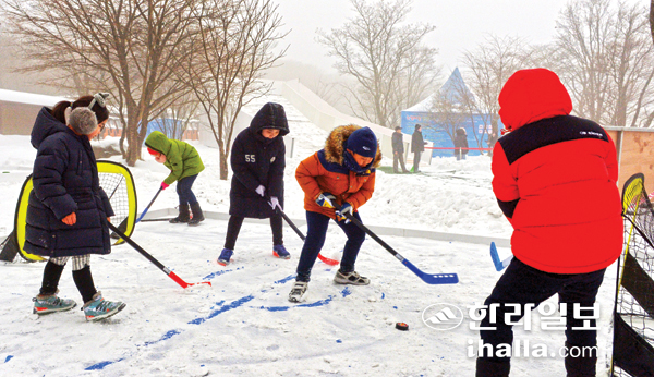 | 제주윈터페스티벌에서 눈놀이를 즐기고 있는 어린이들. |