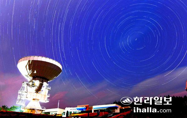 한국천문연구원 KVN탐라전파천문대에서 촬영한 겨울 밤하늘 별들의 궤적. 사진=한라일보 DB
