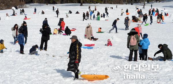 이번 폭설에 제주 도심에서도 보기 드문 장면들이 많이 연출됐다. 폭설이 쏟아지는 와중에 인도 위에서 아이들이 탄 썰매를 끌고 외출을 감행한 엄마들은 분명 겨울을 즐길 줄 아는 이들이다. 이 엄마들은 이번 주말 아이들을 위해 보다 안전하고 쾌적한 곳을 찾아가리라 믿는다.
