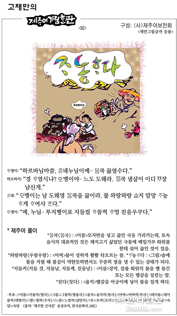 [고재만의 제주어기림혼판] 제주어 풀이(92)