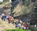 이따금 비가 쏟아지는 궂은 날씨임에도 이날 오전 탐방객들은 송시태 박사의 지질 탐방 프로그램에 참여하기 위해 출발 시각에 맞춰 삼삼오오 모여들었다. 탐방객들은 해안 절벽을 따라 걸으며 송 박사의 지질 이야기를 경청했다.
