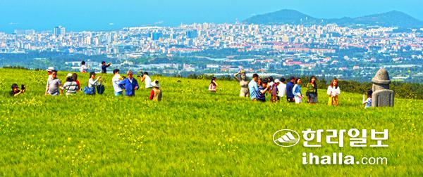 순수한 초록으로 빛나던 청보리는 슬슬 노란 옷을 갈아 입고 있다. 노란 듯 푸른 청보리가 30만평 들판에 가득하다. 이는 꽃으로 수놓아진 벌판과는 다른 감성을 전한다. 한라산에서부터 제주시내까지 이어지며 비스듬히 기울어진 형세도 사진을 찍기 그만이다. 카메라가 향한 방향에 따라 푸른 하늘과 굴곡진 한라산의 모습, 또는 뻥뚫린 제주시 시내와 바다를 담을 수 있으니 말이다.
