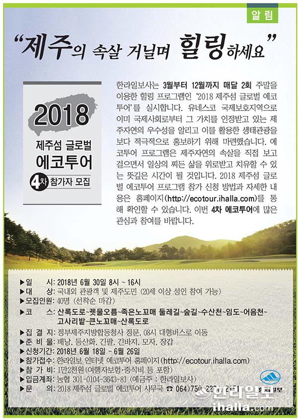 [알림] 2018제주섬 글로벌 에코투어 4차 참가자 모집