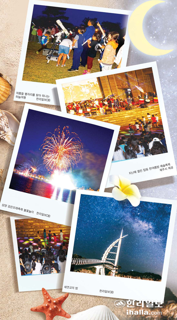 무더위가 연일 맹위를 떨치고 있다. 해가 떨어져도 좀처럼 열기가 누그러지지 않는다. 열대야에 잠은 안 오고, 마냥 집에서 방바닥만 긁고 있자니 가는 여름이 아쉽기만하다. 차라리 밖으로 나가자. 제주의 특별한 여름 밤이 당신을 기다린다.