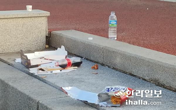 여름철을 맞아 제주시 탑동광장을 비롯해 해안가도 행락객이 몰리며 쓰레기로 몸살을 앓고 있다. 집중 단속이 이어지면서 취사행위는 찾아보기 어렵지만 음주행위는 여전하기 때문이다. 탑동광장 곳곳은 행락객이 먹다 남긴 음식물 쓰레기와 술병 등이 나뒹굴어 매일 이른 아침마다 자원봉사자 등이 출동해 쓰레기를 분리수거하는 일이 반복되고 있다.