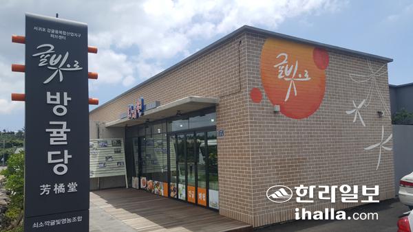 서귀포시 효돈동 '쇠소깍'진입로에 위치한 '방귤당'.