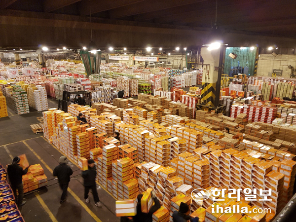 | 서울 가락시장에서 주인을 기다리는 감귤. |